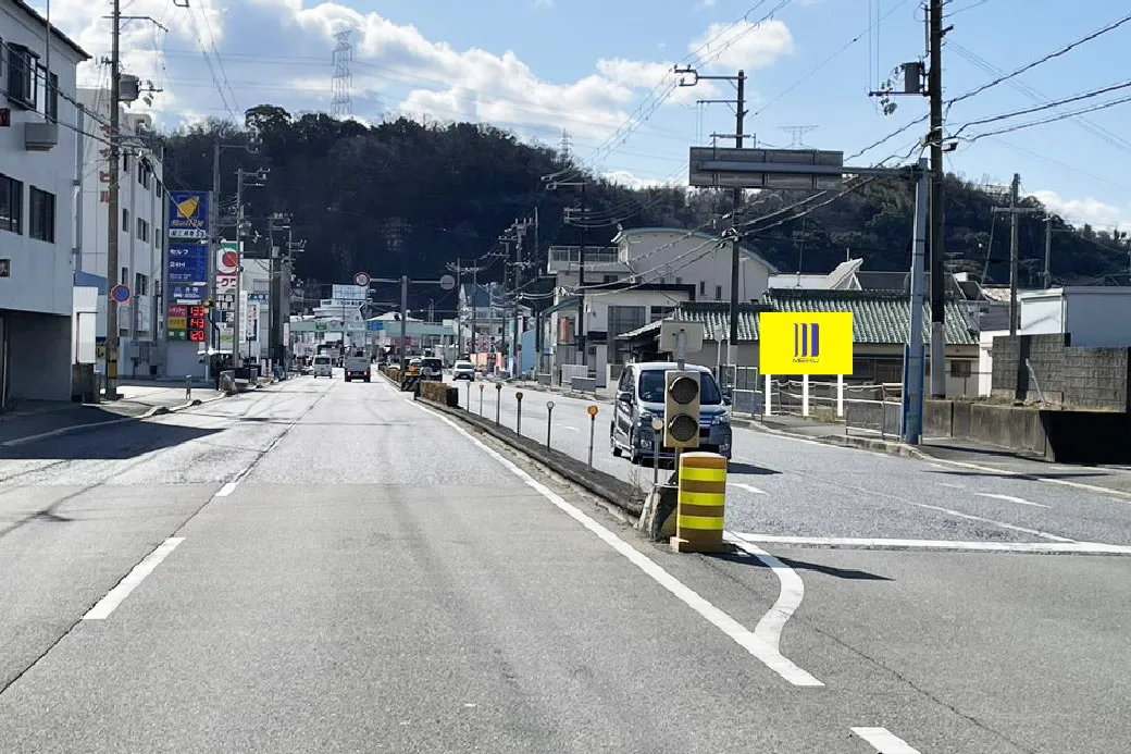 和歌山市毛見の野立て看板枠です。 交通量の多い国体道路沿いに位置しています。 紀三井寺競技場やオークワ紀三井寺店様の近くにあります。 両面掲載可能なので、両面設置の場合は南北両方向からの車両に訴求できます。